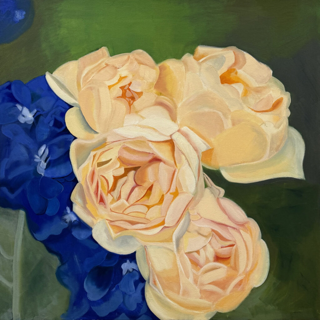 I have an eclectic taste in artists of all different genres and periods but I have found that Georgia O’Keefe has been a prominent inspiration throughout my career as an artist and her influence can particularly be seen in A Rose Is A Rose… in the close up floral subjects.
