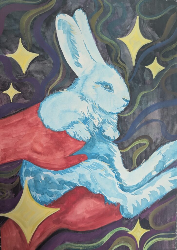 My artistic journey probably began in childhood, but my practice as it exists now took shape when I realised the fusion of several passions: illustration, painting, and narrative storytelling. As a trained writer, stories are integral to who I am, and my explorations of folklore, myth, and the surreal reflect that.